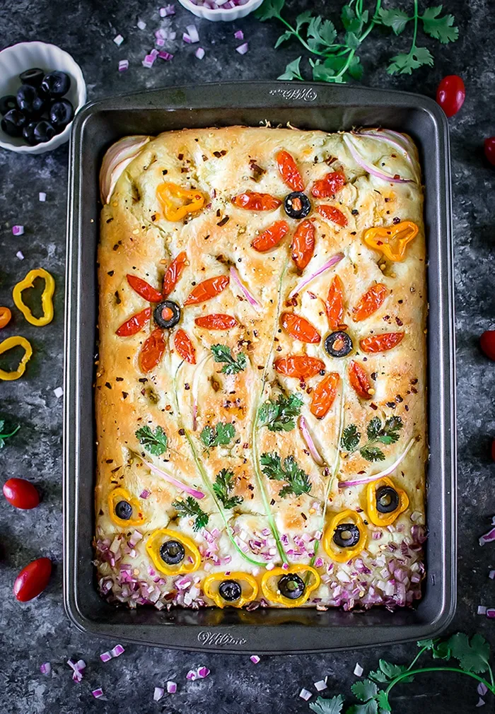 – 2 ½ cups all-purpose flour – 1 tsp salt – 1 tsp sugar – 1 packet active dry yeast (2 ¼ tsp) – 1 cup warm water – 2 tbsp olive oil (plus extra for drizzling) – 1 tsp dried rosemary (optional)